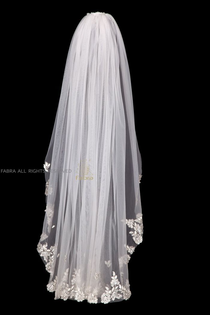تور سر عروس / بالا پُر چین / پایین گل های گیپور با دست اپلیکه شده است / جایی مخصوص برای سنجاق ها و وصل کردن به مو دارد / قد تور عکاسی شده 120 سانتی متر میباشد